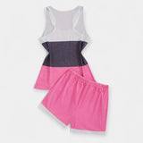 Questo completo leggero e giocoso è proprio quello che ti serve per momenti di relax e vacanze eleganti. La canotta con stampa tropicale e i pantaloncini corti abbinati creano un look comodo e vivace per qualsiasi look estivo.